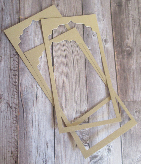- used the larger Studio Lights single panel die to cut three gold panels and set them aside