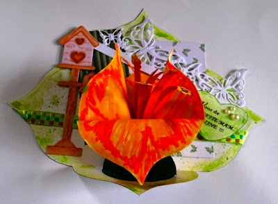 - by now I had four little sentiments so I popped the white one back into the place on the card where it had come from, holding it in place with normal sellotape at the back, then layered two green sentiments and finally the striped sentiment on top for dimension using a fine glue pen. Note, it's important to make sure you have the inner parts of the letters on the white layer
