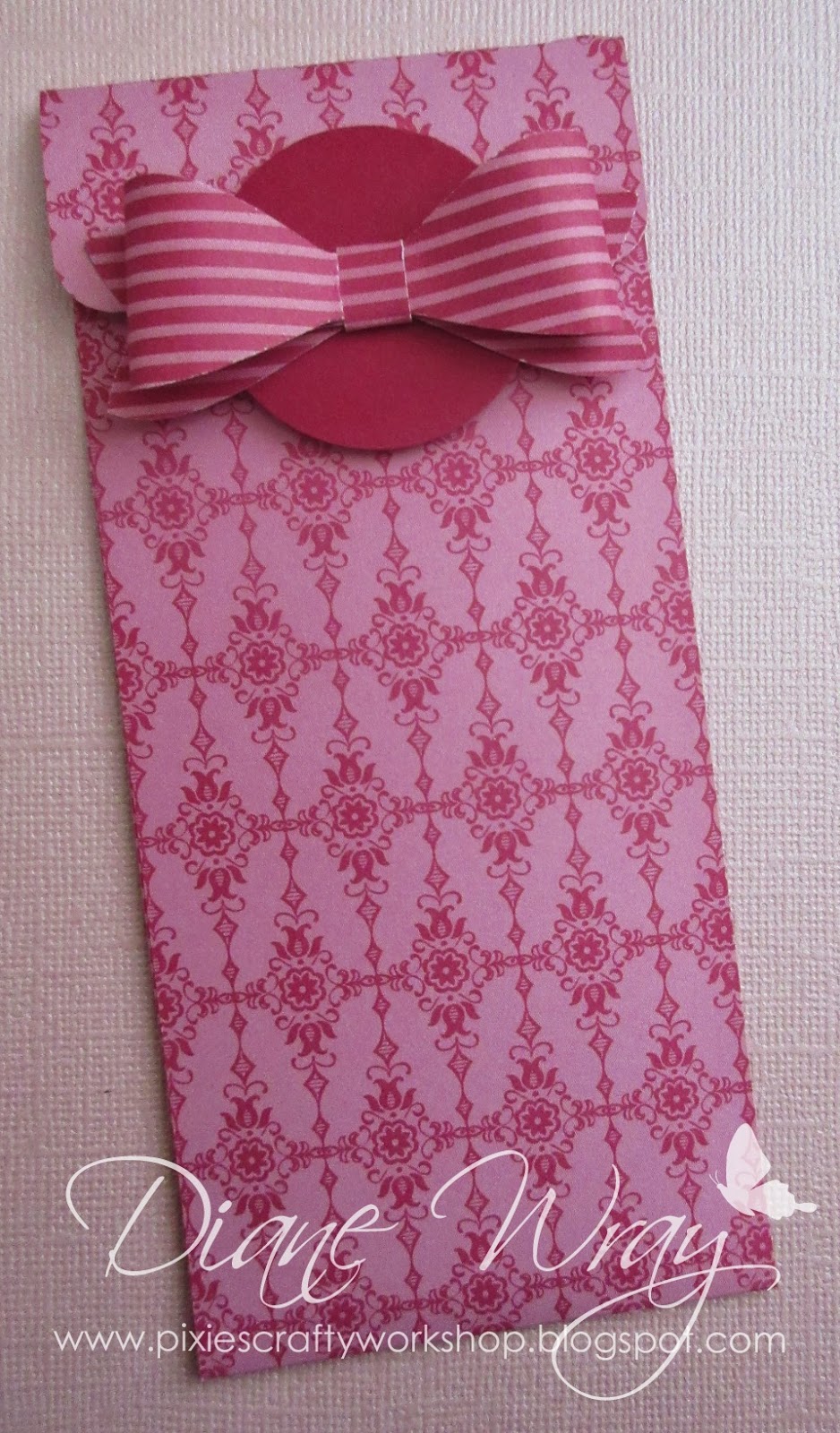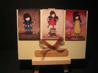 here and is so lovely. Pretty pinks, embossing, ribbon - and such an adorable image. If you look closely you'll see the clever little touch behind the little girl holding the newly wrapped parcel, a sellotape dispenser :) I'm not surprised you chose such a lovely image Irene - I love clever little twists like that.