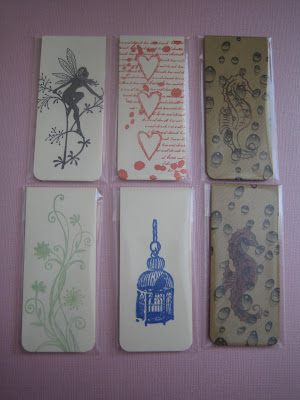 ton of strips of plain card in the snippets folder - so this week I dug a few out and made these magnetic bookmarks: