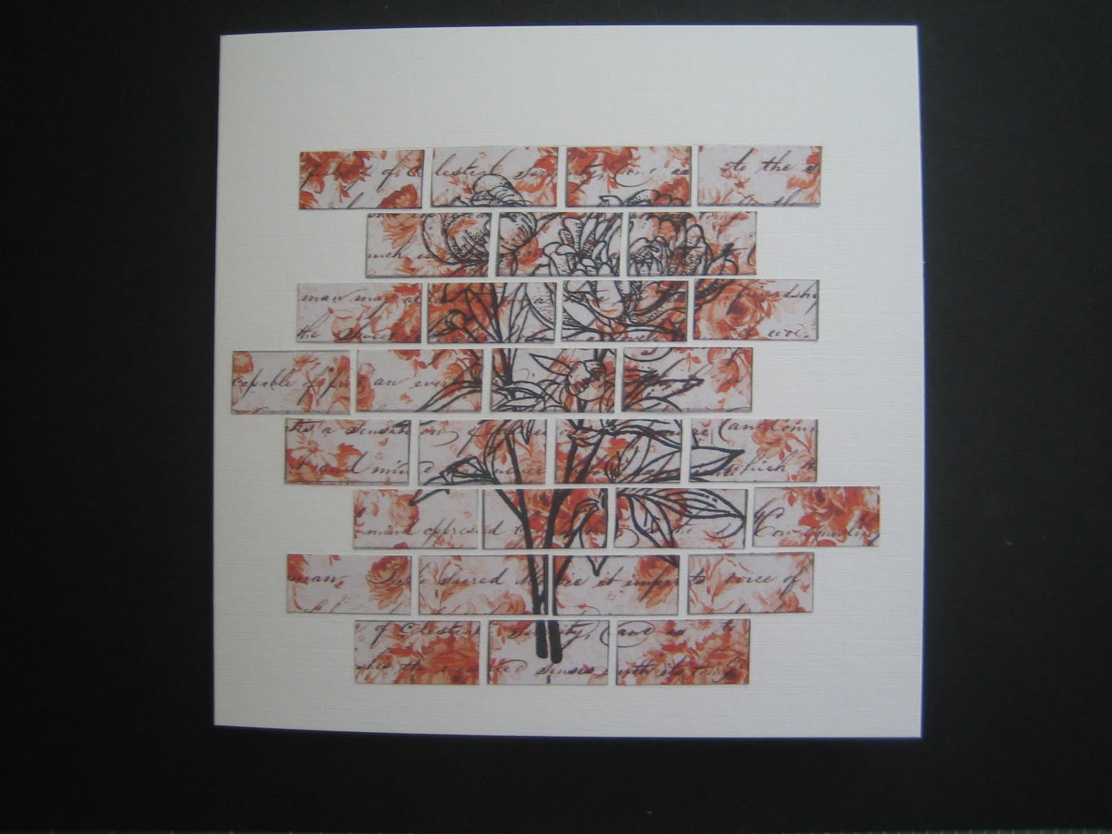 Saw this idea in a tutorial on the Web and had to give it a try! Great fun - so long as you don't lose track of the cut out pieces :( - and so long as you don't do as I did and think you've got the image centred on a card, without taking into account the fact that the 'gaps in the brickwork' will mean that the image ends up not quite where you expected!