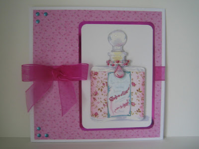 - decoupaged perfume bottle from the Docrafts 'Garden Party' set