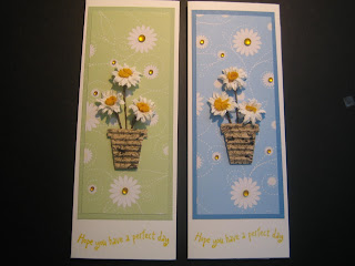 The wavy sentiment 'Hope you have a perfect day' is from Elzybells. Their closing down sale is still on and I've bought quite a few of their unbacked rubber sentiments at about £1 each. Brilliant value and excellent quality. The sentiment was stamped using Brilliance 'Sunflower Yellow' then embossed. I did all the sentiments in one go before tackling the other areas of the cards BTW. It does save the heartache of spoiling a finished card if you don't get the stamping just right :)